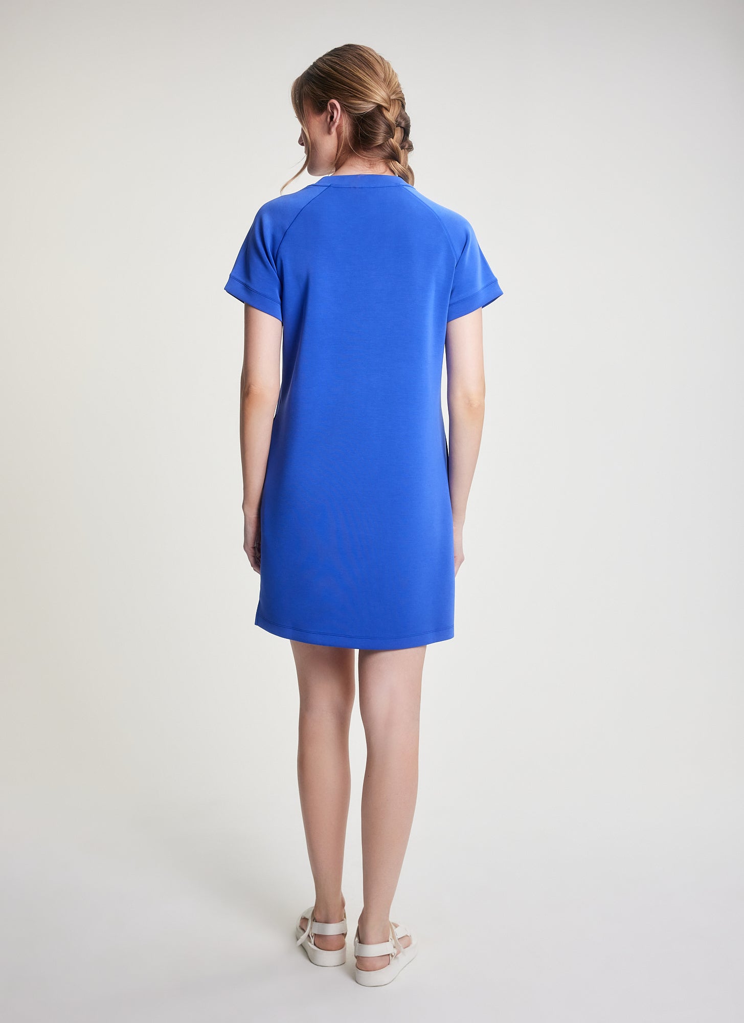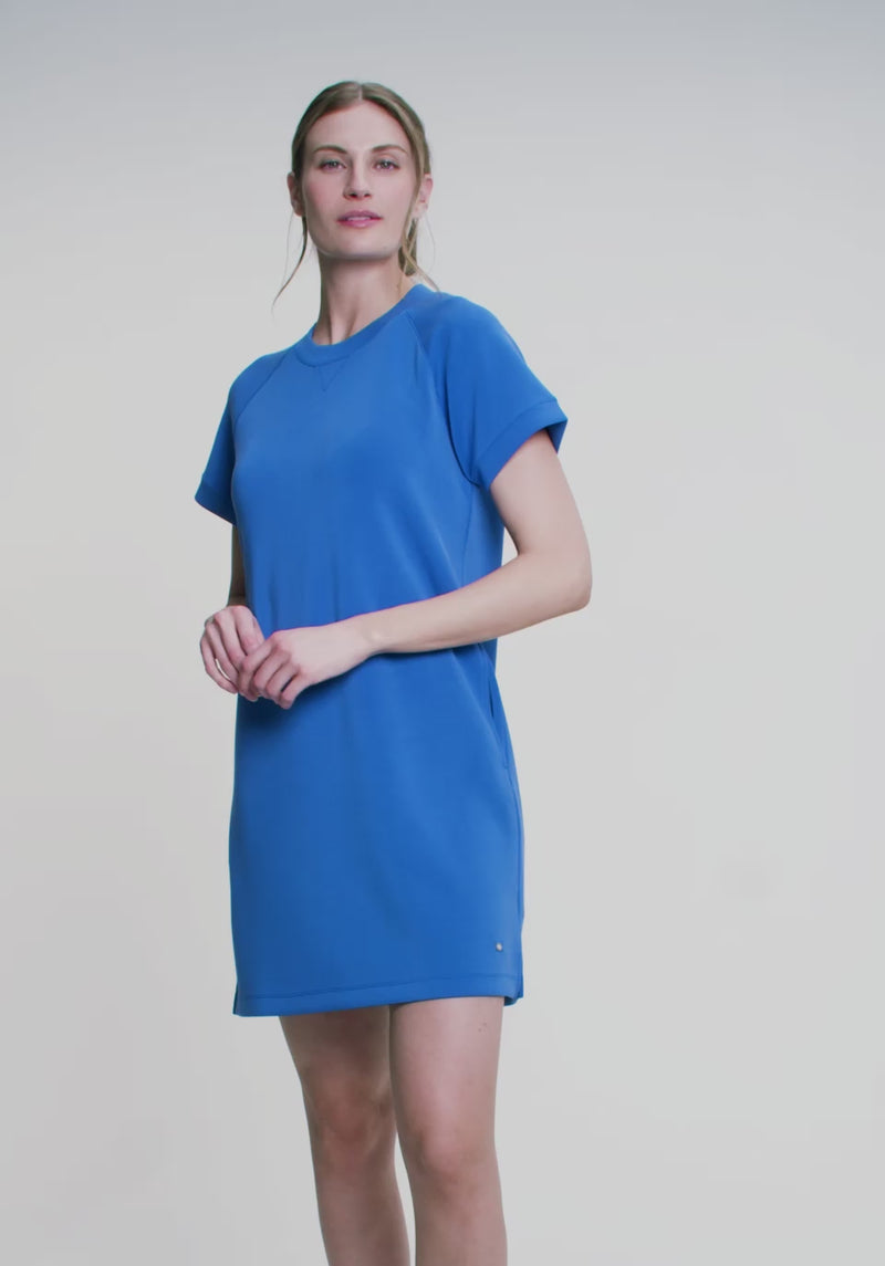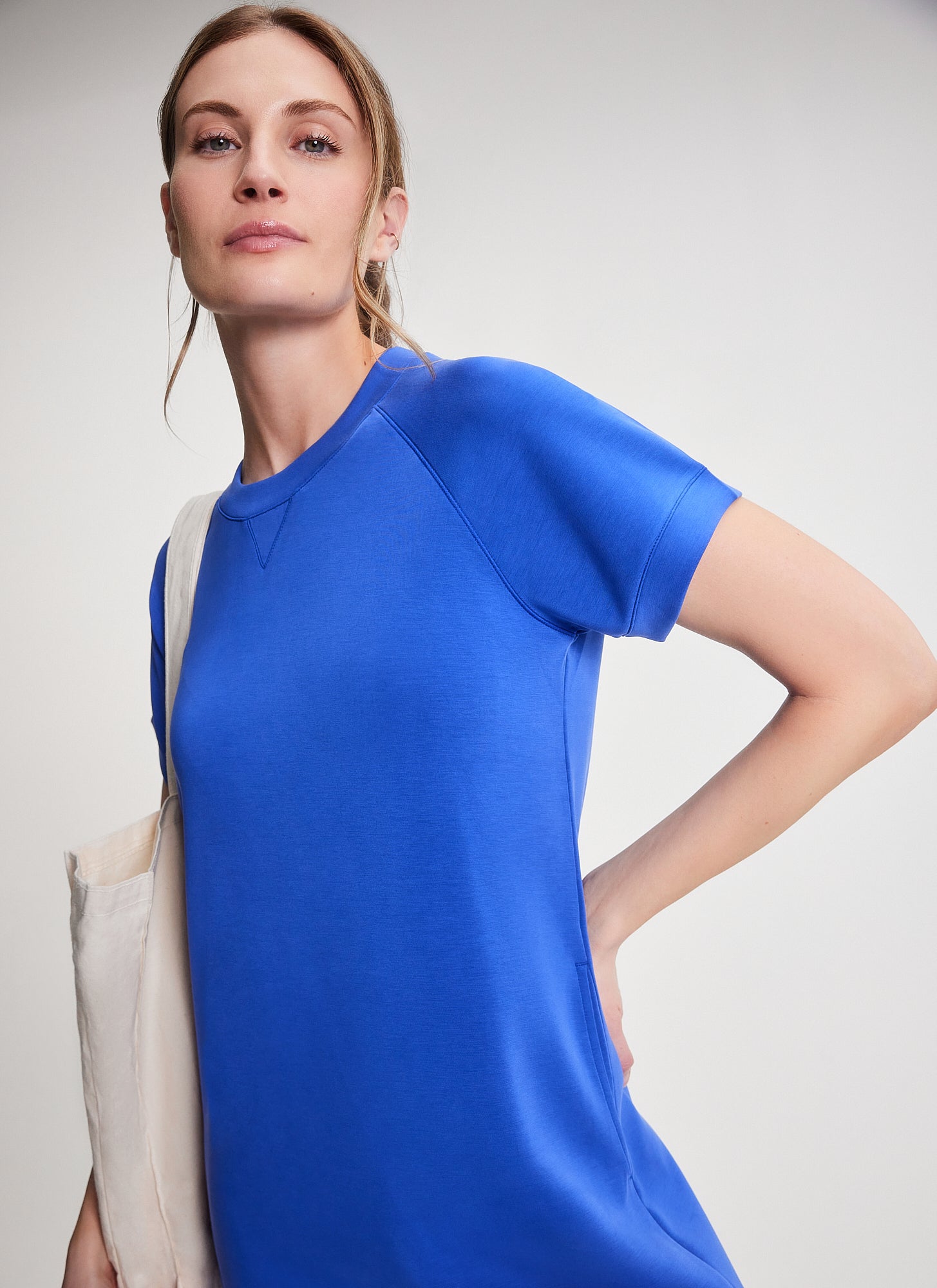 A t-shirt dress that is a must have in any carry on for those cooler days and evenings. Super soft and stretchy, made with our Scuba Modal Soft Touch fabric. Sporty and clean design with two side pockets make it easy to wear in all occasions.