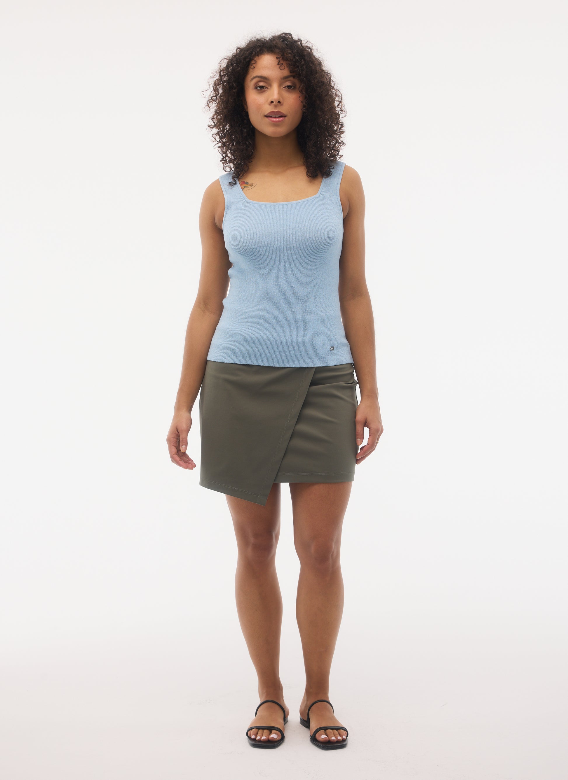 Cette camisole est fabriquée dans un tricot texturé à fibres légères. Parfaite pour la saison estivale avec son encolure carrée et sa coupe ajustée, elle se porte facilement avec un short de vélo ou un legging.