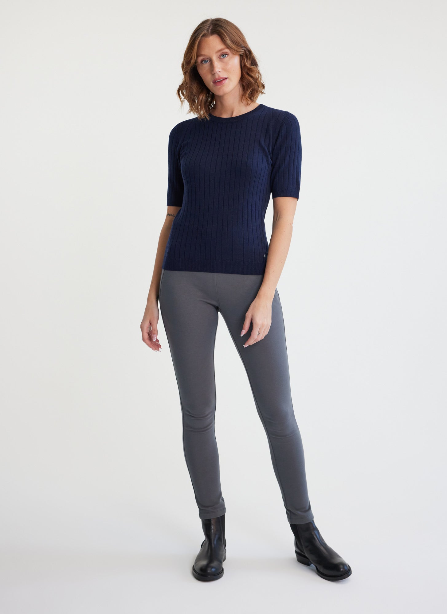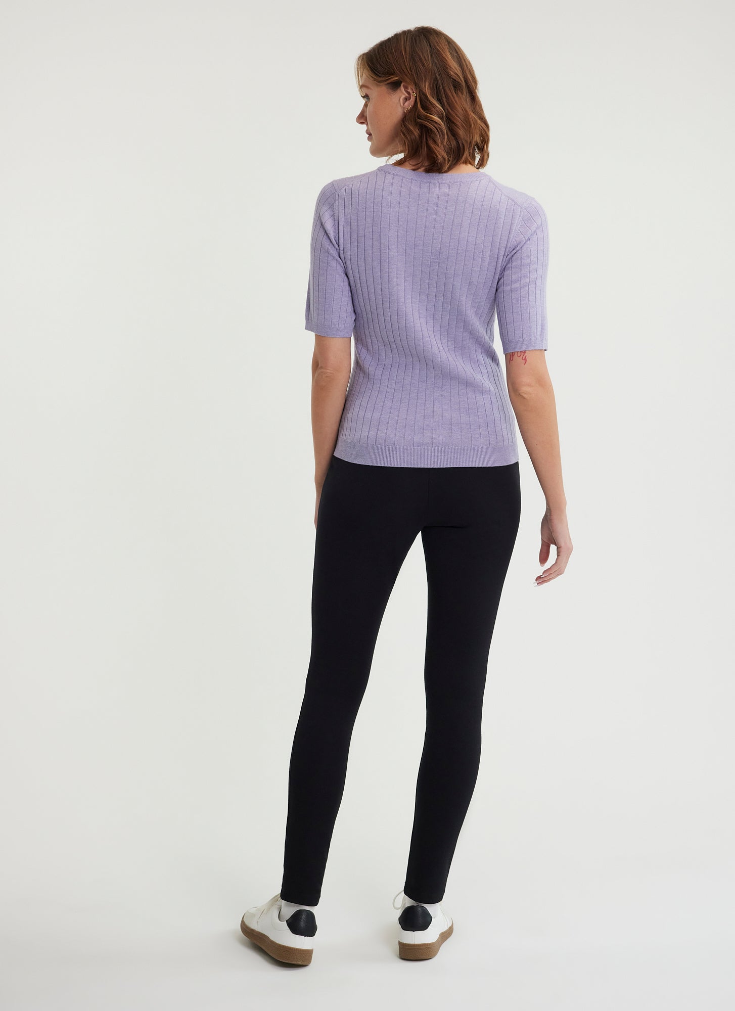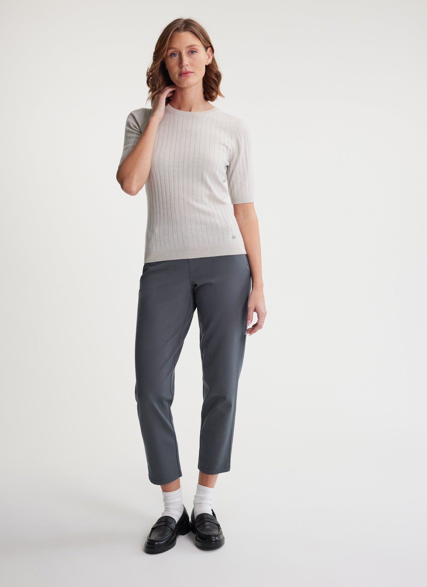 Ce haut à manches courtes en tricot, dotée d'un motif en maille côtelée, est à la fois pratique et élégant. Confectionné en maille fine Ultra Merino🅪 douce et qui ne pique pas, il est parfait pour une transition en douceur vers des températures plus fraîches.