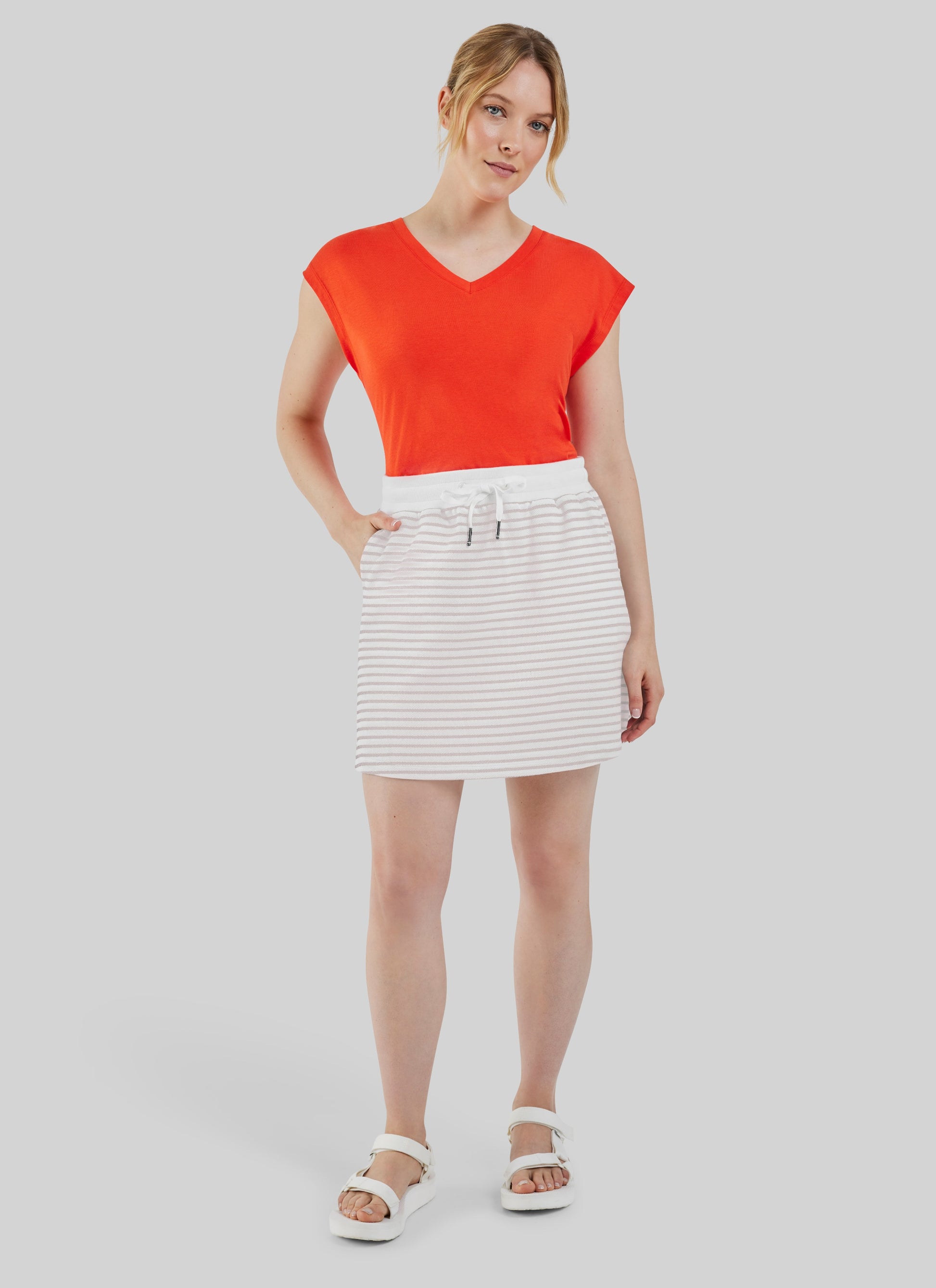 Capturez l'esprit marin avec la jupe HAMPTON. Parfaite pour une journée en bord de mer, elle évoque les vacances avec sa silhouette flatteuse et sa texture agréable en coton doux.