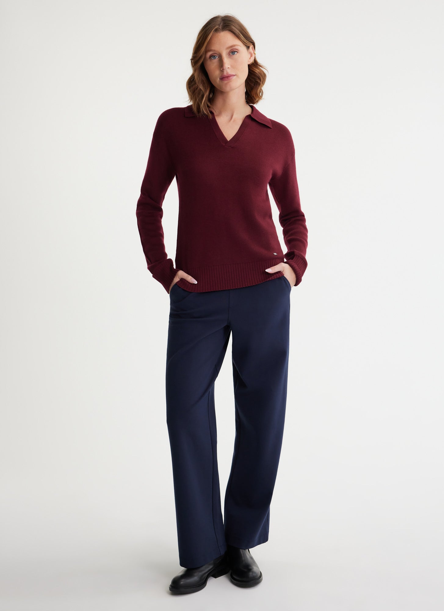 Col polo, avec encolure en ‘'V'', et finition soignée avec détails de bord-côte aux ourlets et au col.